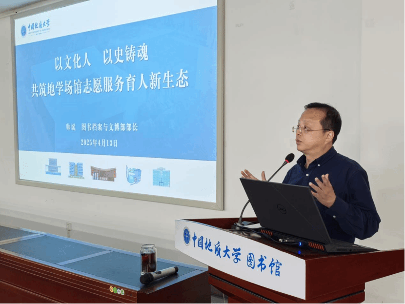 帅斌部长以《以文化人 以史铸魂 共筑地学场馆志愿服务育人新生态》为题作主旨分享。他结合习近平总书记重要讲话精神,深入剖析了新时代中国志愿者精神的内涵,他表示志愿服务是高校培育和弘扬社会主义核心价值观、落实立德树人根本任务的重要途径,是新时代“大思政课”的鲜活载体。他通过中西方政治制度差异、中国制度的优势生动阐述了志愿精神的内在逻辑,他指出老员工要通过认知、情感和行动有效地将志愿精神内化成稳定的公益德性和志愿伦理。他介绍了图档文博部“一部四馆”的yl7703永利情况和各具特色的志愿服务体系,他表示“四馆”将守正创新,携手志愿者打造场馆志愿服标杆,夯实场馆育人实效,推动“四馆”在新时代文明实践中心建设中发挥更加重要的作用。