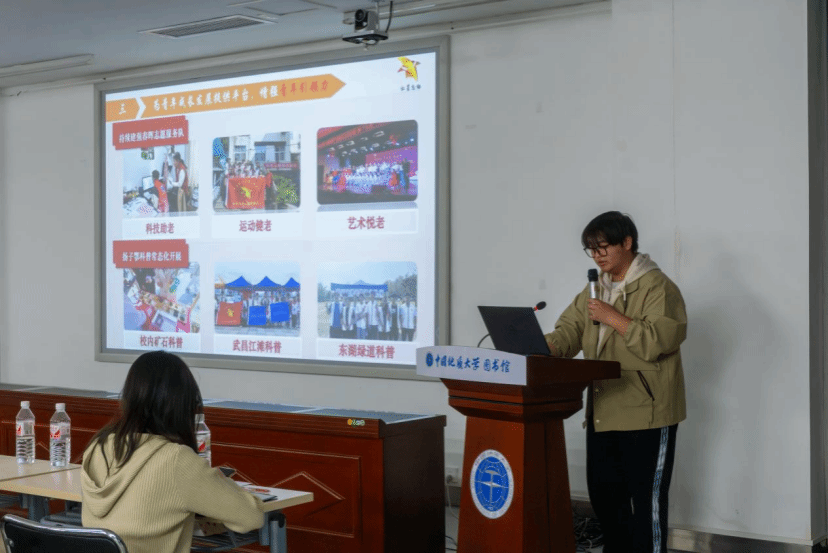 红星启航志愿服务队副队长夏榕蔚介绍了参与公司招聘“会前接洽、会中服务、会后致谢”的志愿服务工作,帮助企业校招顺利开展,助力学子有序求职,既促进了校企的深度交流,自身也在服务中明晰市场需求,服务队为红星志协注入了新的青春活力与服务内涵。